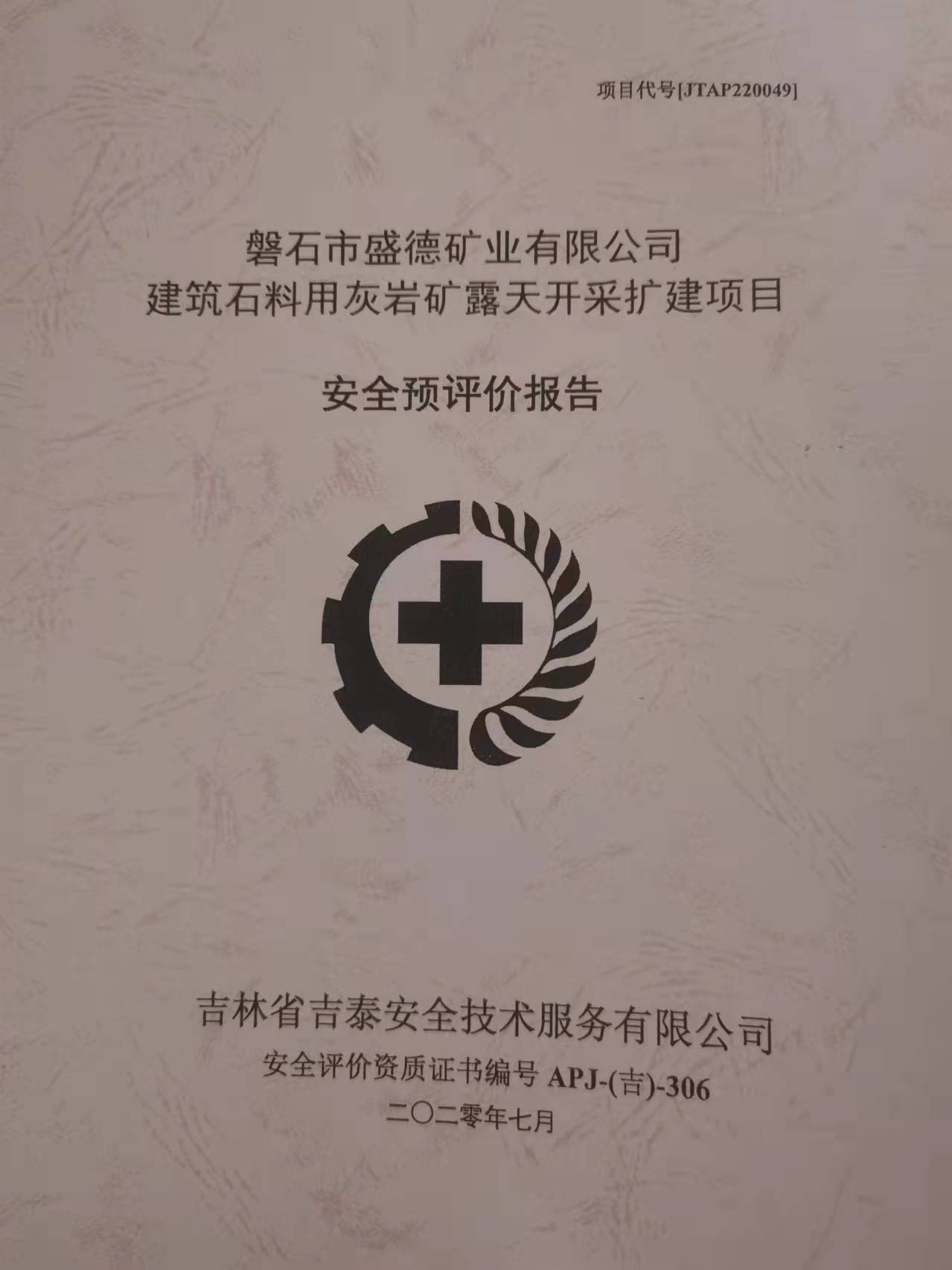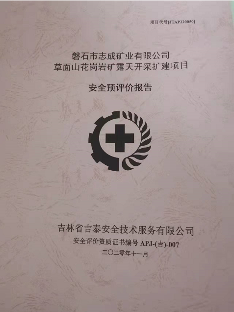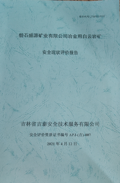 JTAP221010--磐石盛源礦業(yè)有限公司冶金用白云巖礦安全現(xiàn)狀評價