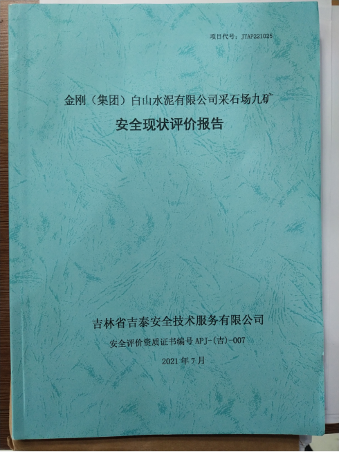 JTAP221025--金剛(集團)白山水泥有限公司采石場九礦安全現(xiàn)狀評價