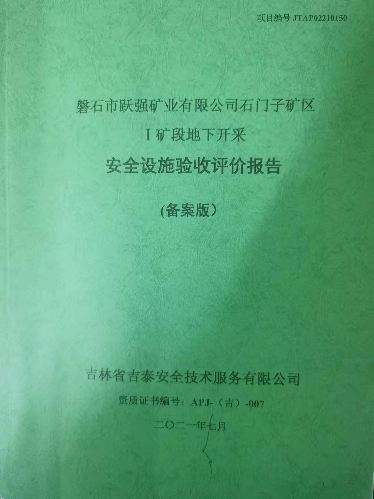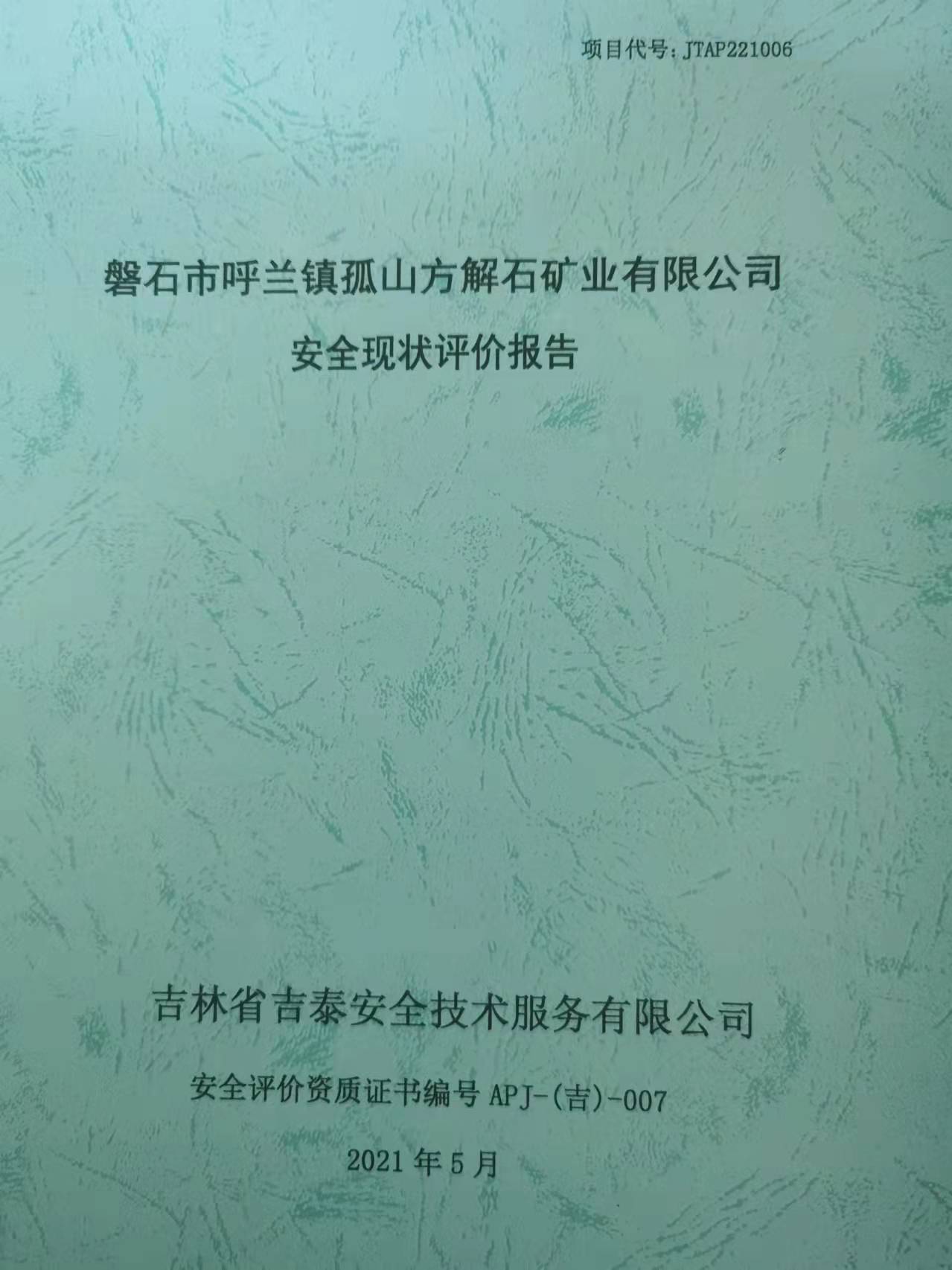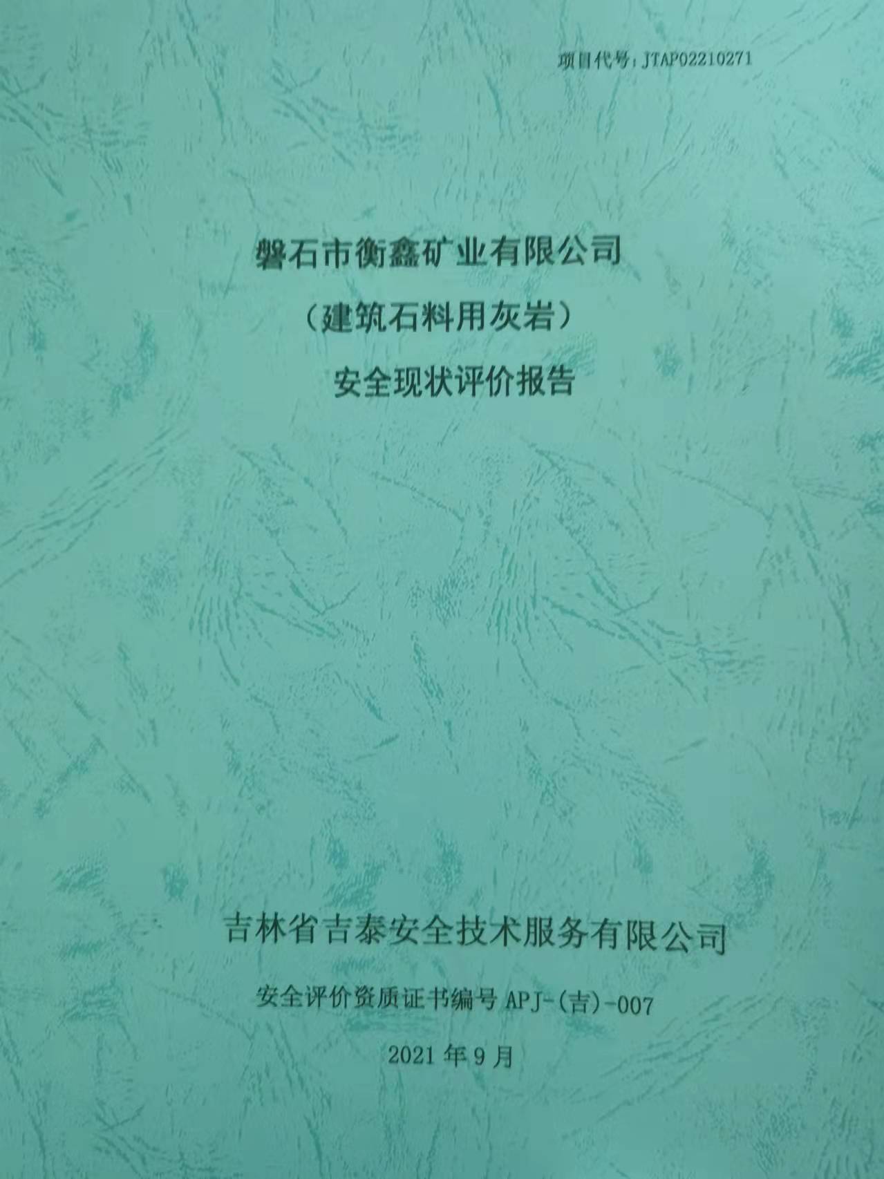JTPA220012--吉林華邑礦業(yè)有限公司東大石灰?guī)r礦驗收