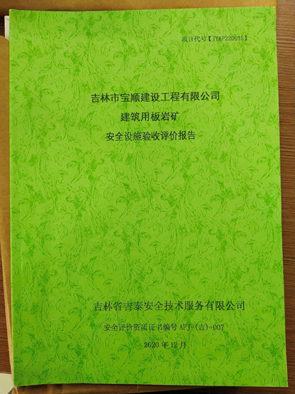 JTAP220035--吉林市寶順建設(shè)工程有限公司建筑用板巖礦驗收