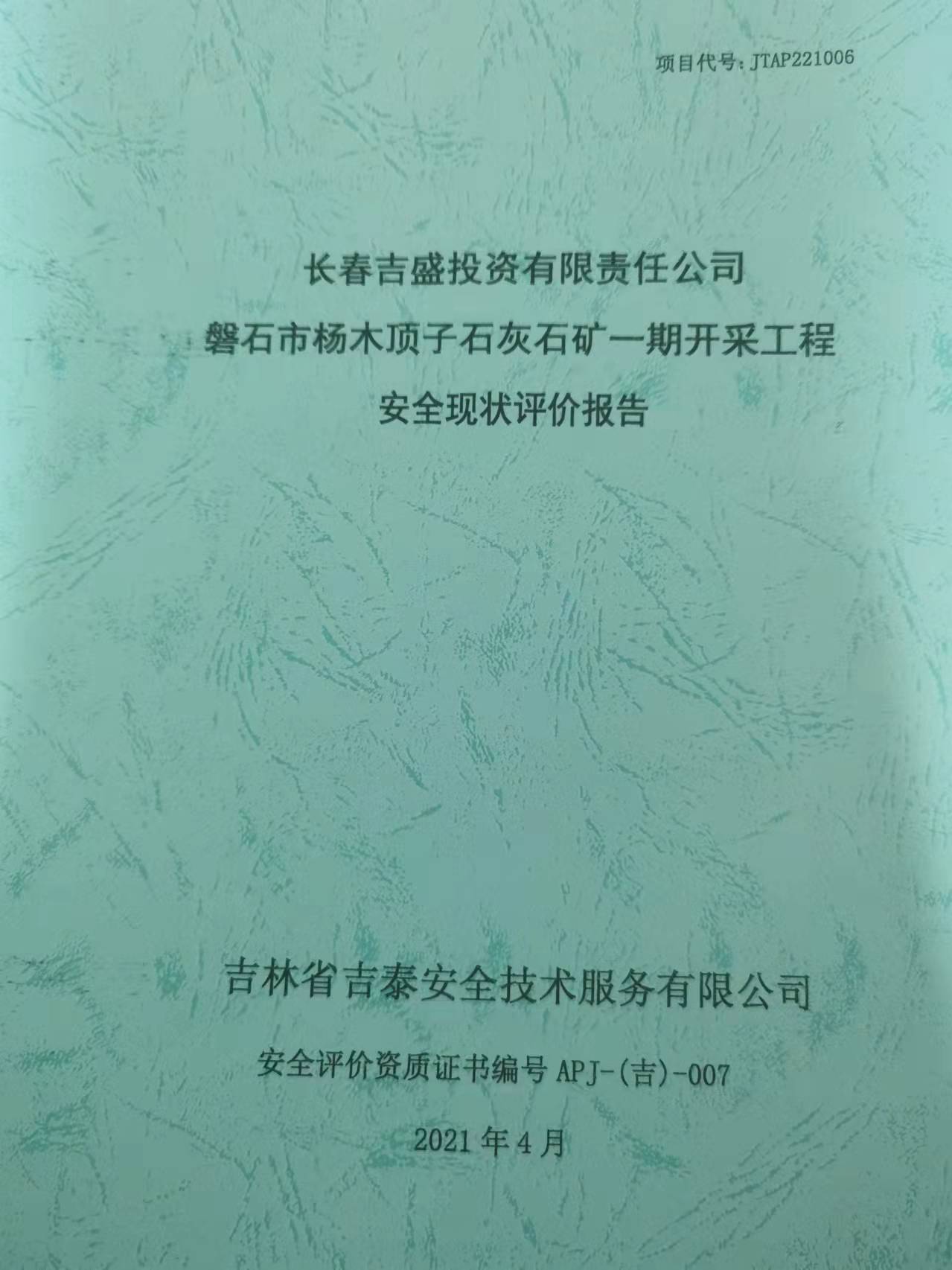 JTAP221006--長春吉盛投資有限責任公司磐石市楊木頂子石灰石礦一期開采工...
