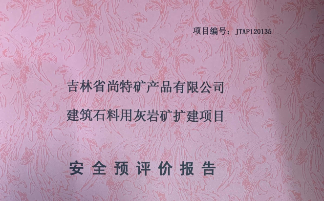 JTAP120135--吉林省尚特礦產品有限公司建筑石料用灰?guī)r礦擴建項目安全預評...