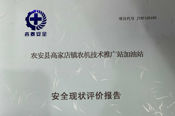 JTAP120193--農(nóng)安縣高家店鎮(zhèn)農(nóng)機(jī)技術(shù)推廣站加油站安全現(xiàn)狀評價報告