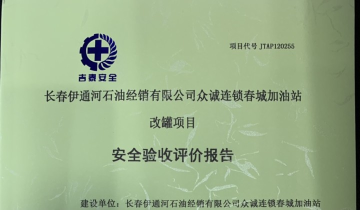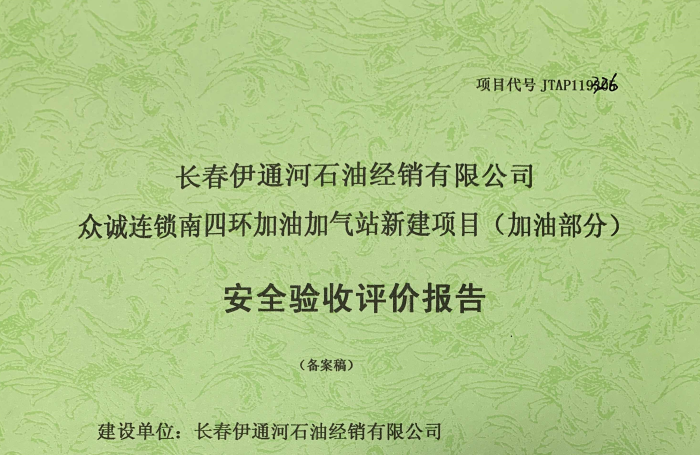 JTAP120255--長(zhǎng)春伊通河石油經(jīng)銷有限公司眾誠(chéng)連鎖春城加油站改罐項(xiàng)目安全...