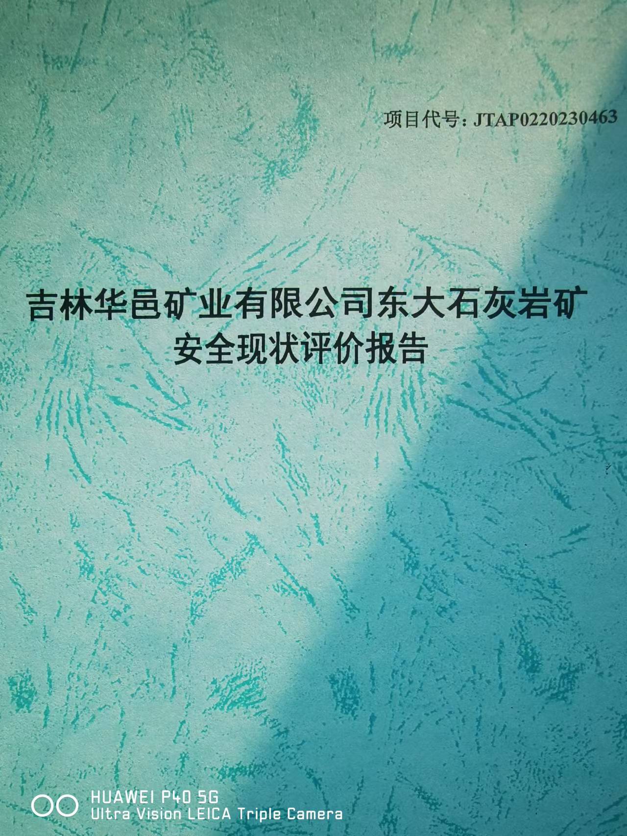 JTAP0220230463 -吉林華邑礦業(yè)有限公司東大石灰?guī)r礦安全現(xiàn)狀評價
